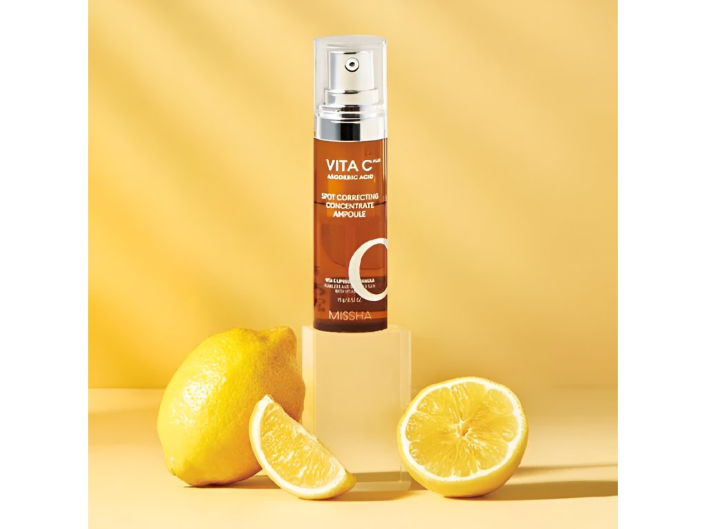 Missha Vita C Plus Spot Correcting Concentrate Ampule zesvětluje hyperpigmentaci, vyrovnává tón, odstraňuje matnost a dodává pleti krásný lesk.