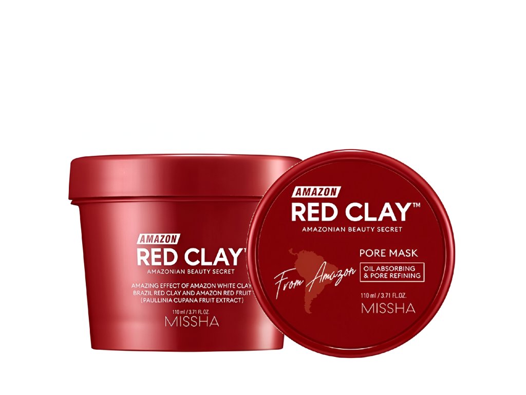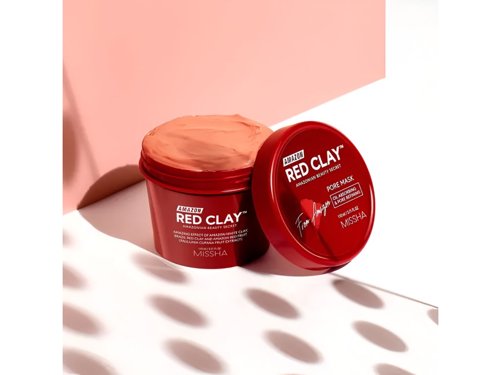 Missha Amazon Red Clay Pore Mask je hustá čistící maska na bázi červeného jílu určená pro normální, mastnou, smíšenou nebo problémovou pleť.