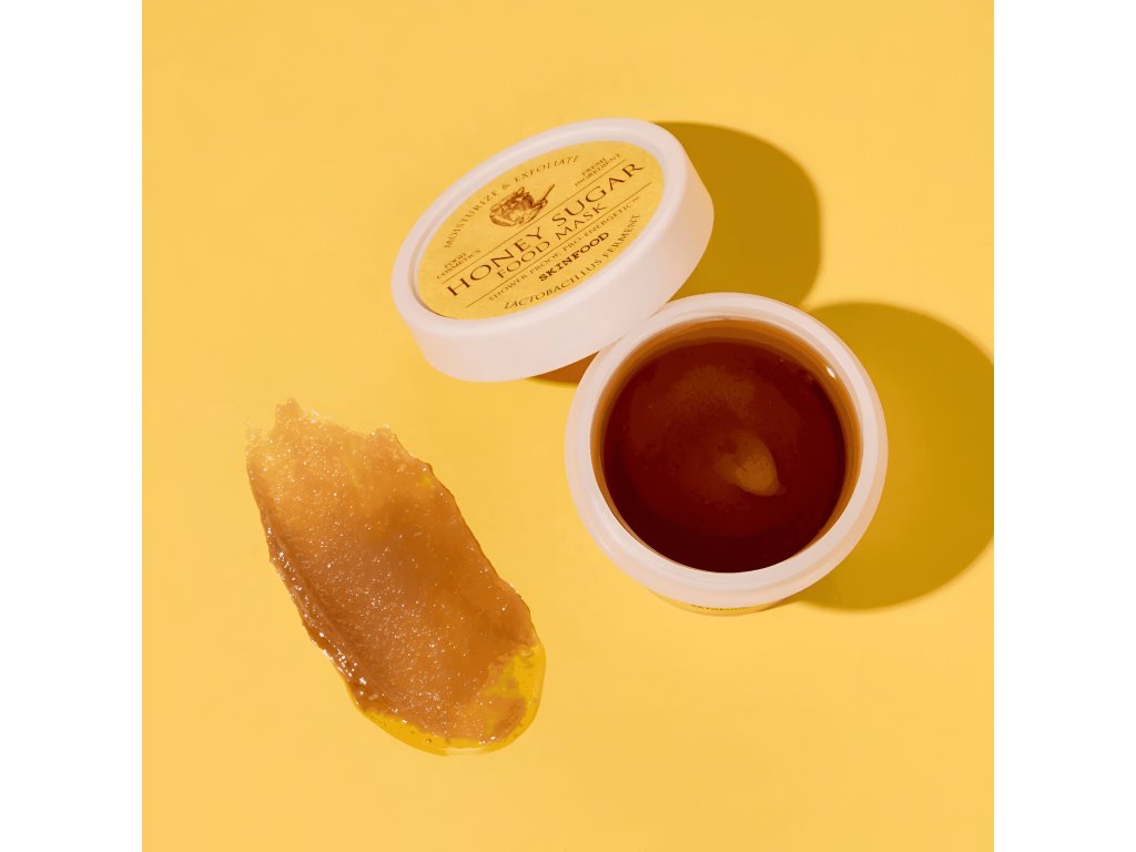 Skinfood Honey Sugar Food Mask je pleťová maska pro hydrataci, výživu a zjemnění textury pleti. Obsahuje med a cukr, které pokožku odlupují a udržují její zářivost a zdraví. Akátový a manukový med pokožku hydratují, zklidňují a také ji chrání před poškozením volnými radikály. Navíc organické granule černého cukru a jejich přírodní kyselina glykolová pomáhají odstranit odumřelé kožní buňky a udržovat pokožku hydratovanou a jemnou.