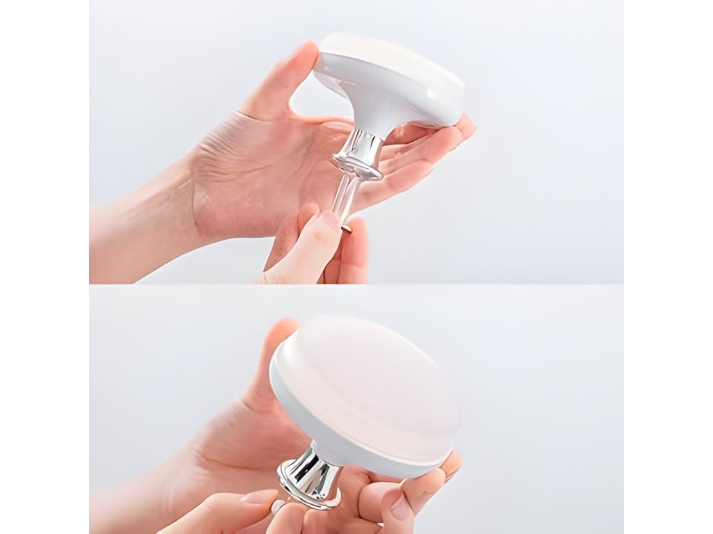 Naneste čisticí prostředek na obličej (pěna nebo gel). Stiskněte ventil asi 6krát, abyste zvětšili povrch kartáče. Masírujte si obličej minutu, omyjte vodou. Opláchněte kartáč, připevněte jej ke svislému povrchu, aby se vysušil.
