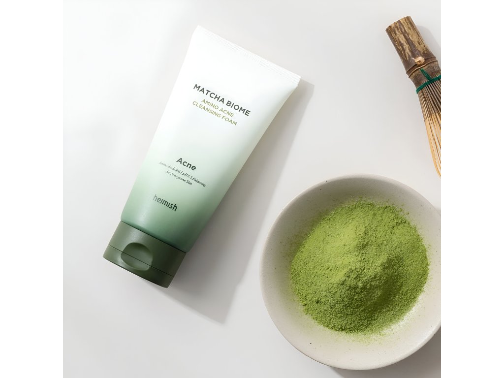 Protizánětlivá pěna s probiotiky a extraktem z Matcha Heimish Matcha Biome Amino Acne Cleansing Foam jemně čistí pleť, odstraňuje všechny druhy nečistot a zbytků make-upu. Nevyvolává pocit suchosti a podráždění.