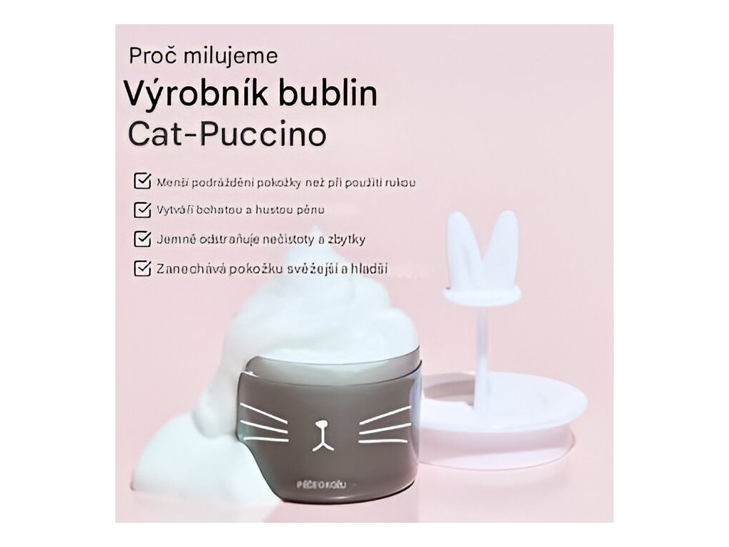 Cat-ppuccino Bubble Foam Maker pomáhá přeměnit jakýkoli čisticí prostředek na bohatou a hustou pěnu podobnou marshmallow. Jemně odstraňuje nečistoty a mastnotu a zanechává pokožku svěží a hladší.