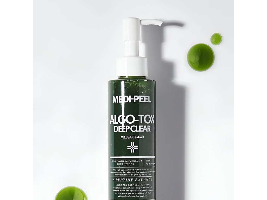 Pěna pro hloubkové čištění pleti s detoxikačním účinkem Medi-Peel Algo-Tox Deep Clear účinně rozpouští všechny druhy nečistot, vodě-odolnou kosmetiku a make-up, rozpouští tukové zátky a čistí póry.