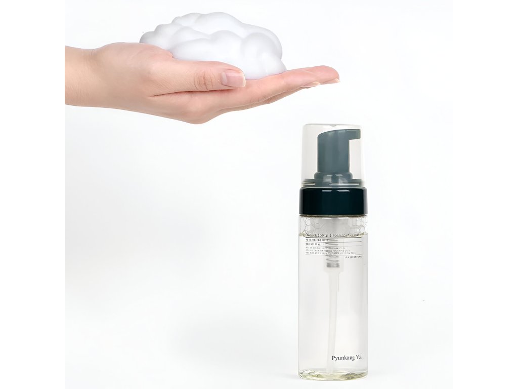 Jemná pěna pro citlivou pokožku Pyunkang Yul Calming Foaming cleanser s nízkým pH jemně čistí, zabraňuje ucpaným pórům, zánětům a černým tečkám.