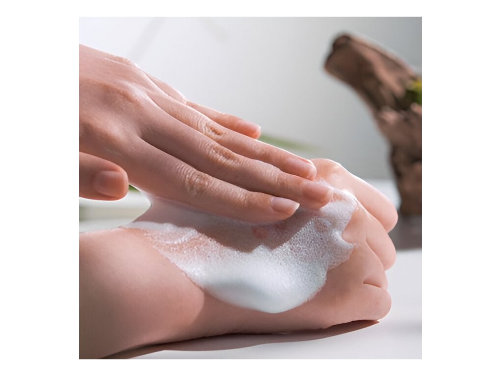 Naneste pěnu na mokré ruce, vytvořte bohatou pěnu a aplikujte na obličej. Jemně vmasírujte do pokožky a důkladně opláchněte vlažnou vodou.