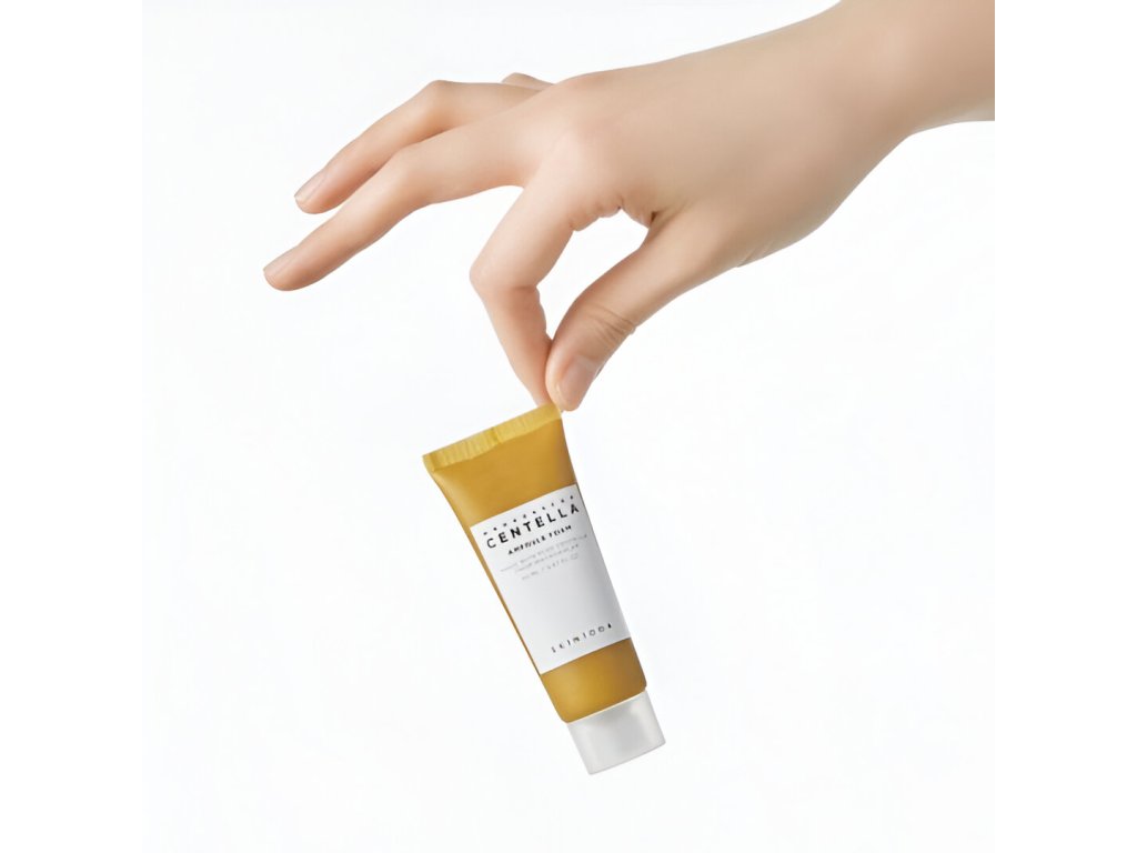 Skin1004 Madagascar Centella Ampoule Foam jemně čistí, odstraňuje nečistoty, odumřelé kožní buňky a přebytečný kožní maz z pórů, nevysušuje a nezpůsobuje pocit pnutí.