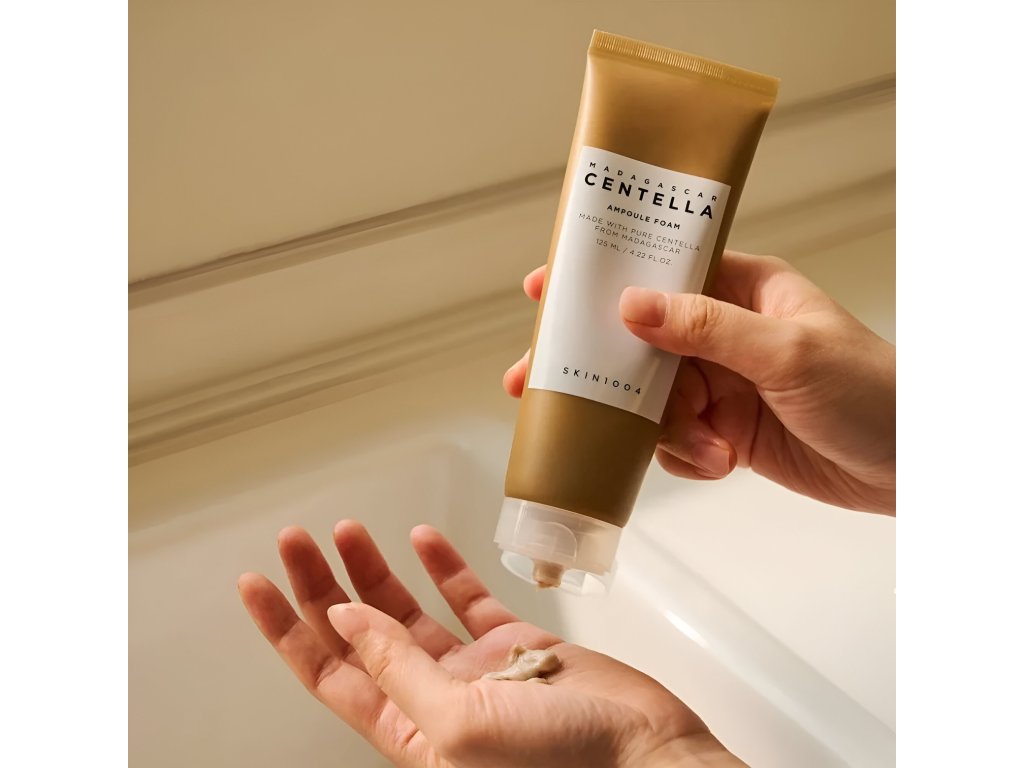 Skin1004 Madagascar Centella Ampoule Foam jemně čistí, odstraňuje nečistoty, odumřelé kožní buňky a přebytečný kožní maz z pórů, nevysušuje a nezpůsobuje pocit pnutí.