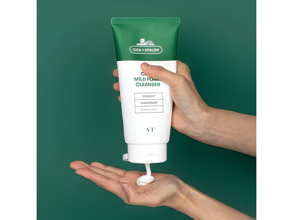 VT Cosmetics Cica Mild Foam Cleanser je ideální čistící pěna pro pleť se sklonem k akné. Zklidňuje zanícenou a podrážděnou pokožku a vytváří bohatou pěnu, která odstraňuje nečistoty hluboko v pórech. Přírodní složky minimalizují suchost po čištění a hydratují bariéru, která byla po čištění oslabena.
