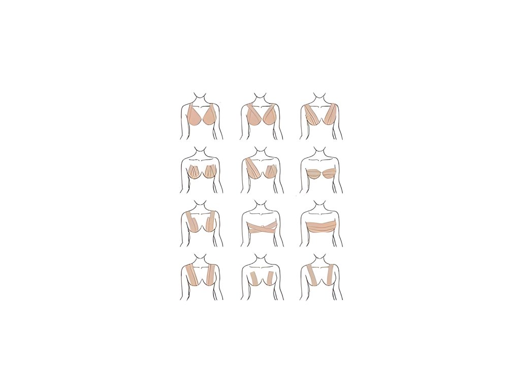 Inovativní způsob podpory prsou pomocí samolepících pásek do vykrojených a neobvyklých výstřihů. Flexibilní a prodyšná bavlněná páska s hypoalergenním lepidlem bez latexu šetrným k pokožce.