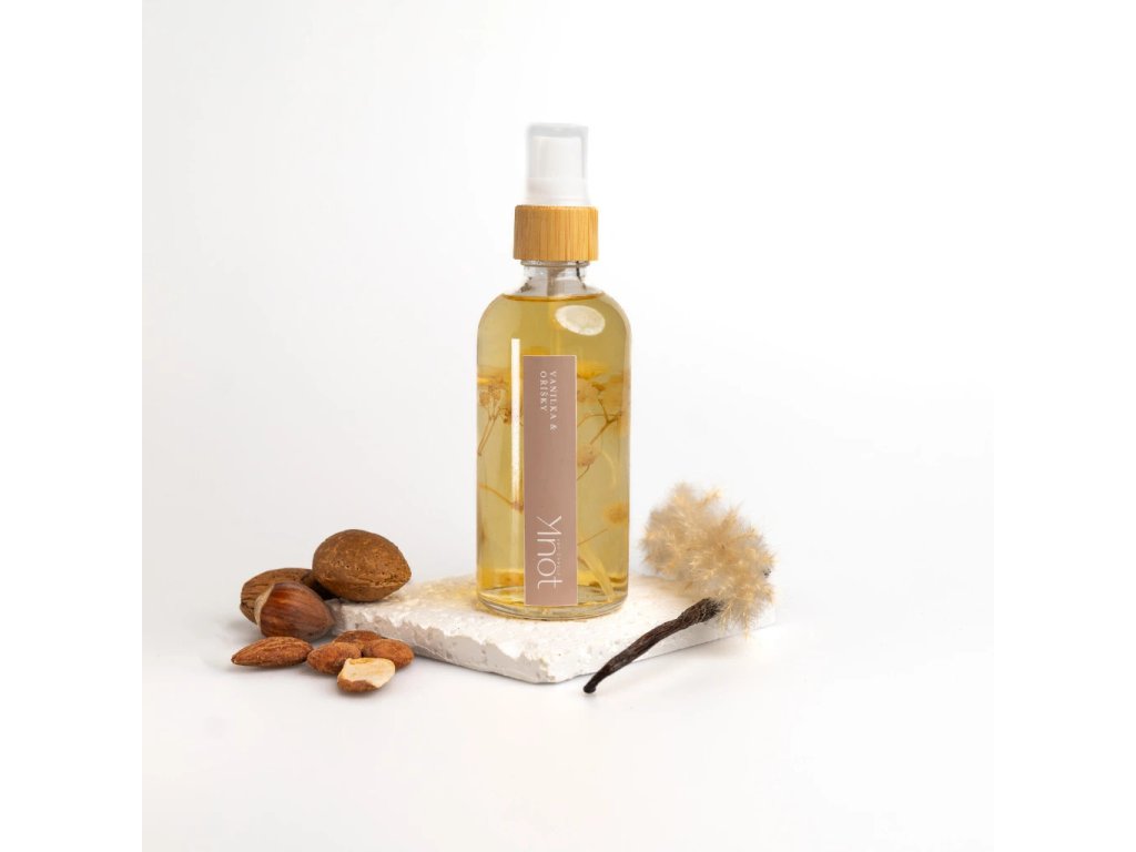 Bytová vůně v čirém skle s dřevěným víčkem podzimní dny je umístěna ve stylové skleněné lahvičce s dřevěným vrškem, což podtrhuje její sofistikovaný charakter. Díky čirému sklu jsou uvnitř lahvičky viditelné originální snítky bylin, květin a citrusů, které jsou nedílnou součástí každé vůně. Tyto vizuální prvky dodávají vůni nejen jedinečný vzhled, ale také umocňují její přírodní charakter. Díky praktickému balení ve spreji je použití této bytové vůně jednoduché a rychlé. Stačí několik stisků a Váš domov se naplní přírodní a osvěžující vůní, která vydrží po dlouhou dobu.