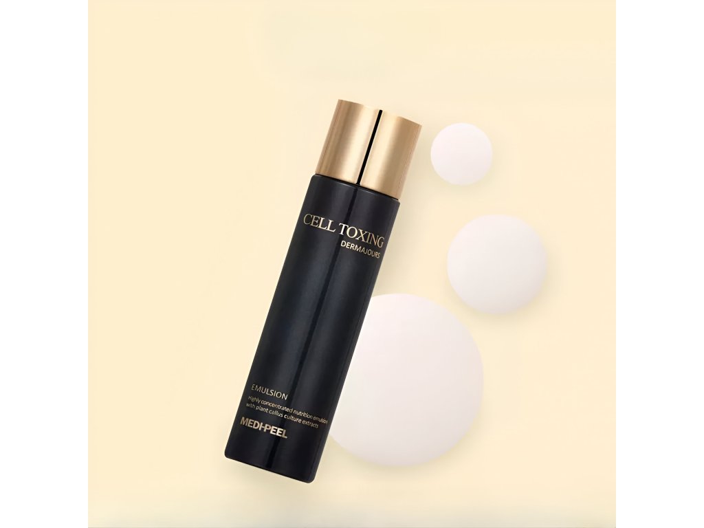 Emulze proti stárnutí s kmenovými buňkami Medi-Peel Cell Toxing Dermajours má intenzivní regenerační a anti-aging efekt. Tato luxusní emulze má komplexní účinek na pokožku, vyhlazuje mikroreliéf, zabraňuje vzniku vrásek, posiluje kostru epidermis a rozjasňuje nežádoucí pigmentaci.