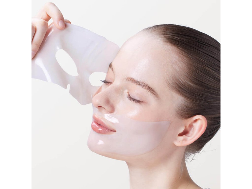Sloupněte hydrogelovou masku z ochranné fólie. Všechny části přiložte na obličej, uhlaďte a jemně přitlačte. Nechte masku působit 30 minut až několik hodin, dokud se nestane průhlednou. Sejměte masku, zbývající esenci neoplachujte, pokračujte v péči. Masku můžete nechat působit i přes noc