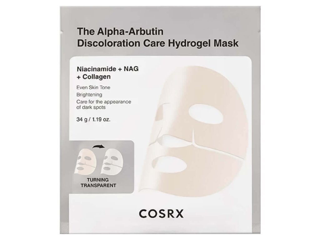 COSRX The Alpha-Arbutin Discoloration Care Hydrogel mask - rozjasňující hydrogelová maska s Alpha-Arbutinem