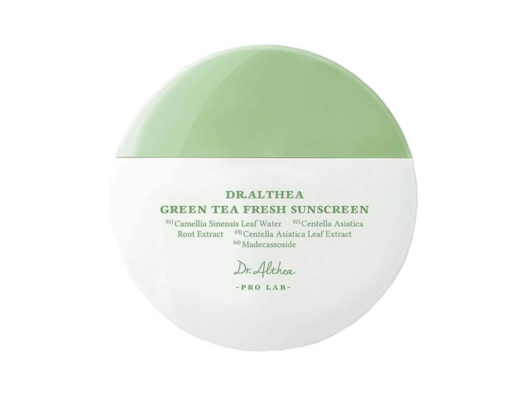 Dr. Althea Green Tea Fresh Sunscreen SPF50+ PA++++ je lehký opalovací krém, který poskytuje vysokou ochranu před UVA a UVB zářením, jemně zklidňuje pokožku a zabraňuje podráždění. Jeho vodnatá, lehká textura se rychle vstřebává bez lepivosti a bílých skvrn.