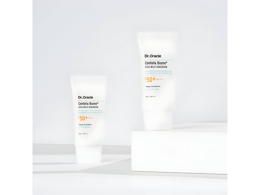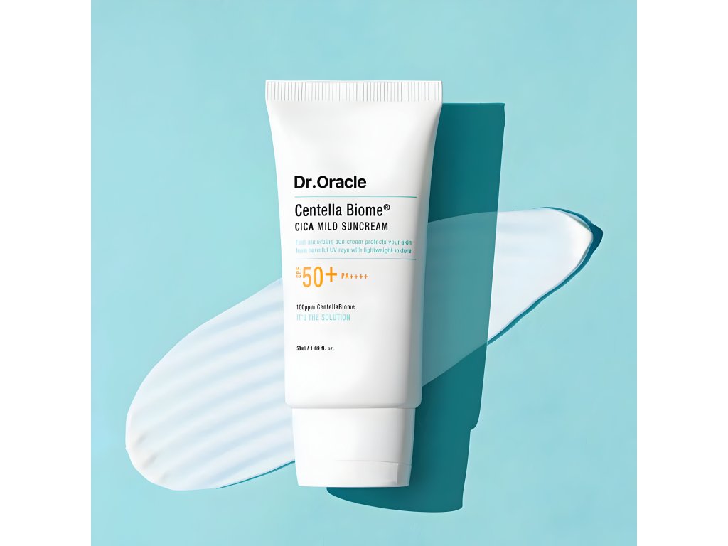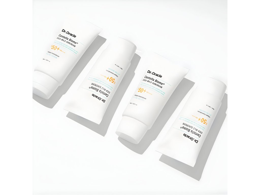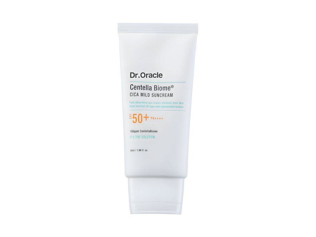 Dr.Oracle Centella Biome Cica Mild Sun Cream je hybridní opalovací krém obsahující chemické i fyzikální filtry. Krém chrání pokožku před škodlivým ultrafialovým zářením, zabraňuje fotostárnutí a tvorbě stařeckých skvrn. Vysoká ochrana SPF 50+/PA++++.