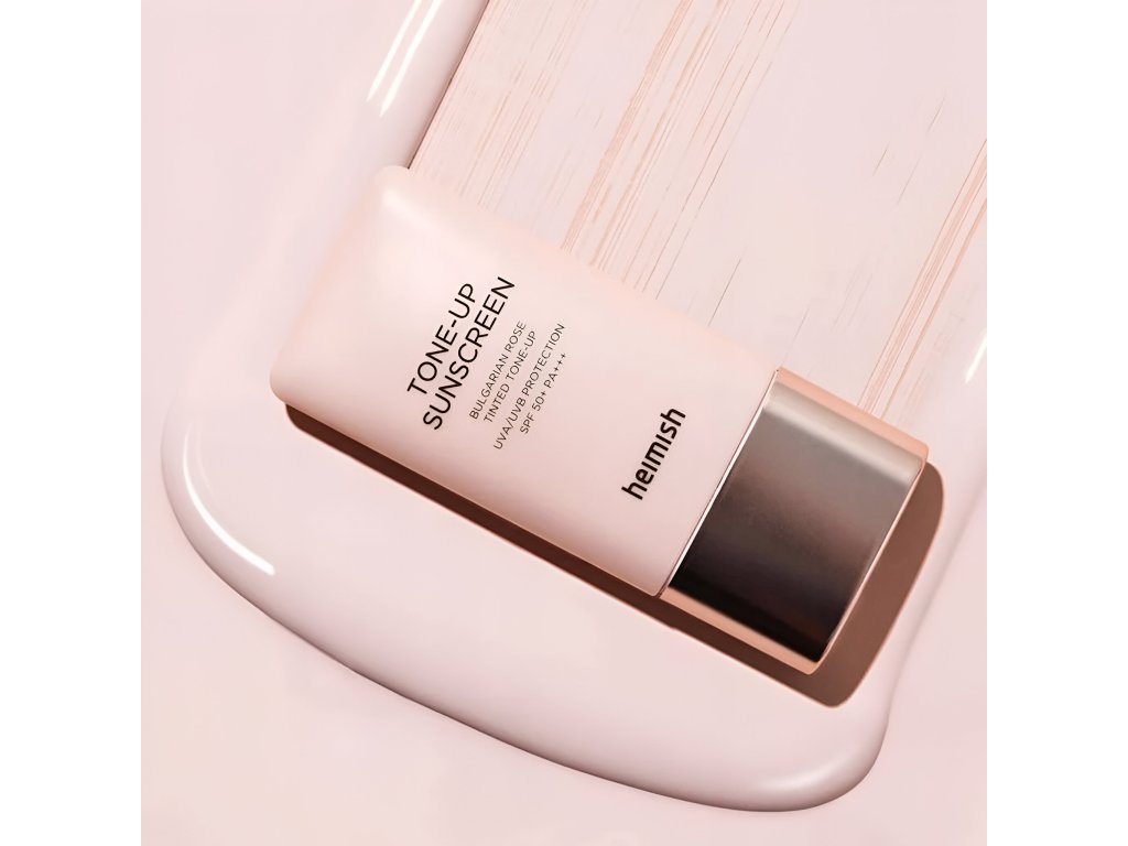 Heimish Bulgarian Rose Tone-up Sunscreen SPF 50+ PA+++ je vynikající báze pod make-up pro mastnou a smíšenou pleť s ochranou proti slunci.