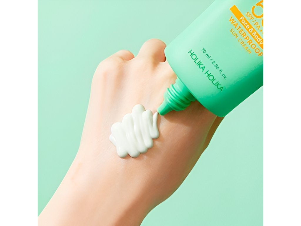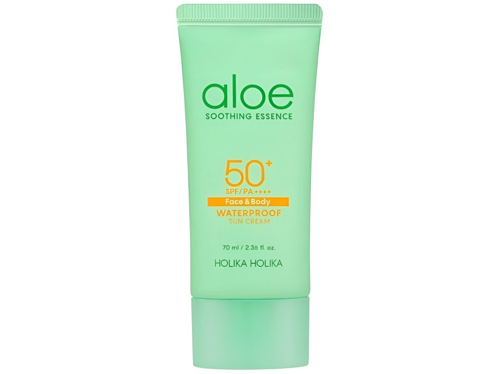 Holika Holika Aloe voděodolný opalovací krém SPF 50+ PA ++++ poskytuje nejvyšší úroveň ochrany před sluncem, zabraňuje spálení a zarudnutí, zabraňuje fotostárnutí a vzniku pigmentových skvrn způsobených ultrafialovým zářením.