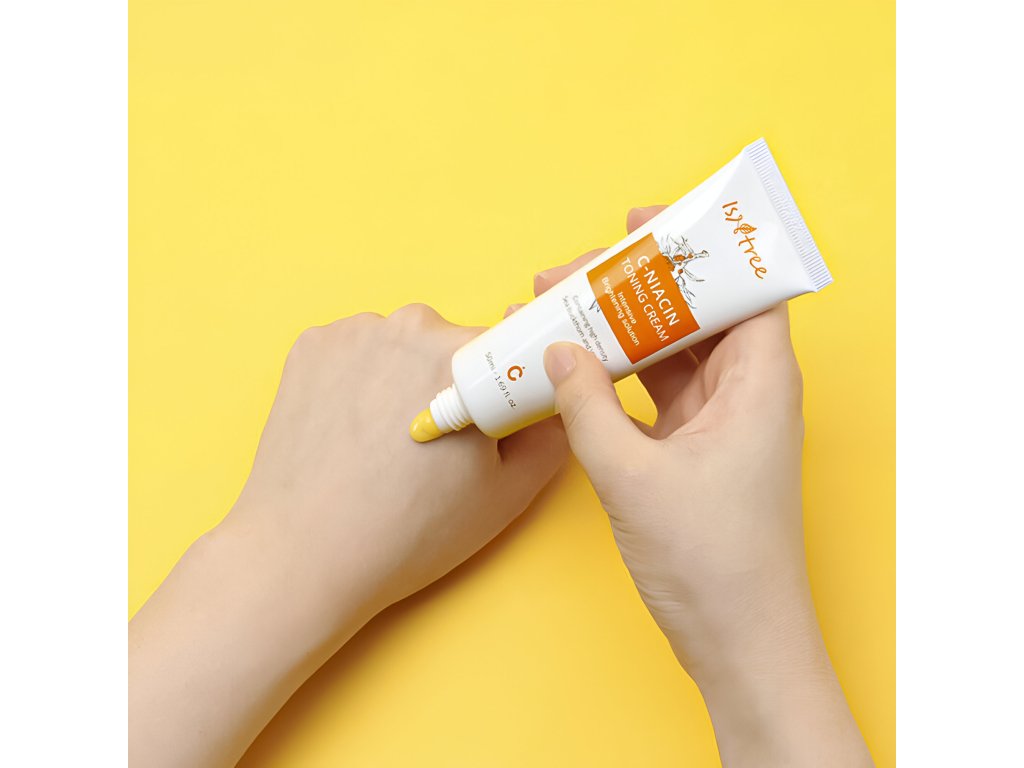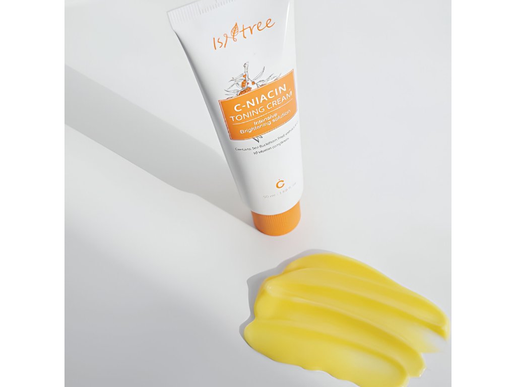 Isntree C-Niacin Toning Cream je každodenní hydratační krém na obličej pro všechny typy pleti, ale je zvláště skvělý pro ty, kteří chtějí zesvětlit tmavé skvrny a rozjasnit pleť.