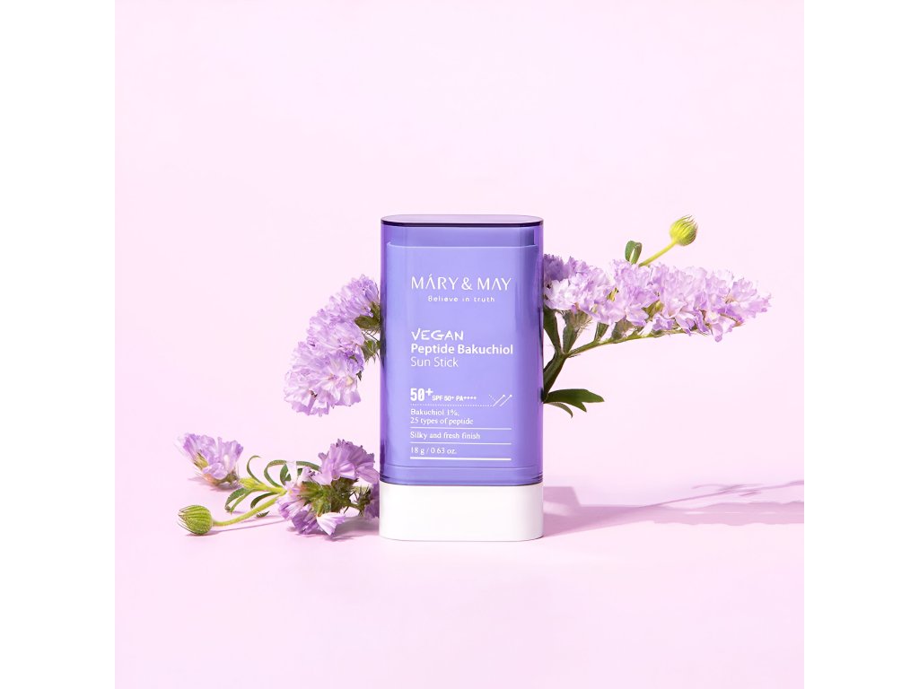 Mary&May Vegan Peptide Bakuchiol Sun Stick SPF50+ PA++++ je produkt na ochranu proti slunci se silným účinkem proti stárnutí. Zabraňuje fotostárnutí, vzniku stařeckých skvrn a popálenin a také zvyšuje hustotu a elasticitu pokožky.