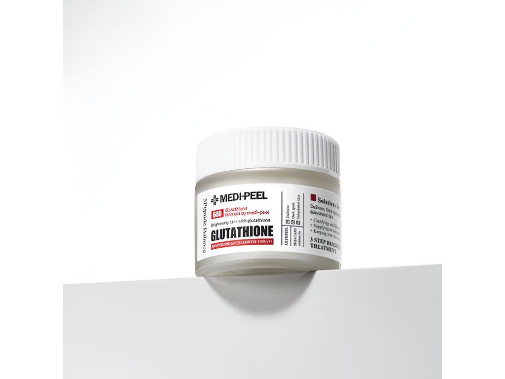 Medi-Peel Bio Intense Glutathion White Cream rozjasňující krém s glutathionem bojuje proti nežádoucí pigmentaci, zlepšuje pleť a sjednocuje její tón. Doplňuje nedostatek vlhkosti, reguluje úroveň vlhkosti pokožky a dodává jí zdravý lesk.