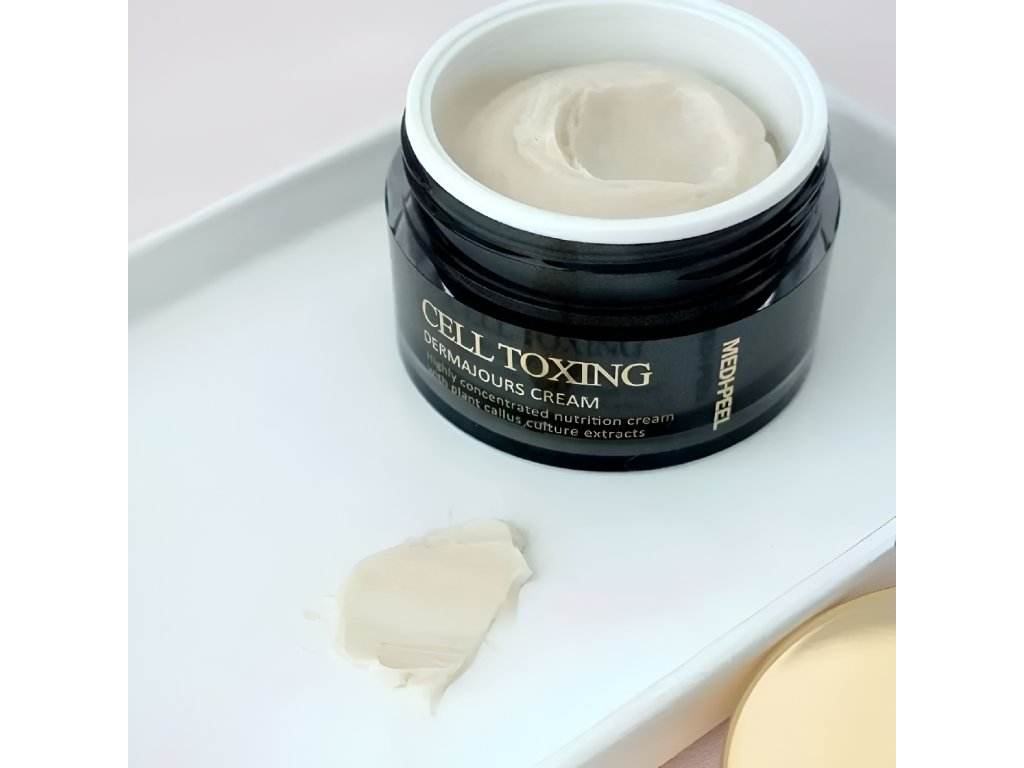 Krém proti stárnutí s kmenovými buňkami Medi-Peel Cell Toxing Dermajours Cream účinně obnovuje kožní turgor, zvyšuje pevnost a pružnost tkání, posiluje a zpevňuje ovál obličeje. Krém má liftingový účinek, aktivně bojuje proti známkám stárnutí pleti, vyhlazuje a redukuje hloubku vrásek a také udržuje zdraví epidermis. Produkt zlepšuje imunitu a tonus pokožky, nasycuje ji energií a obnovuje zdravý jas.