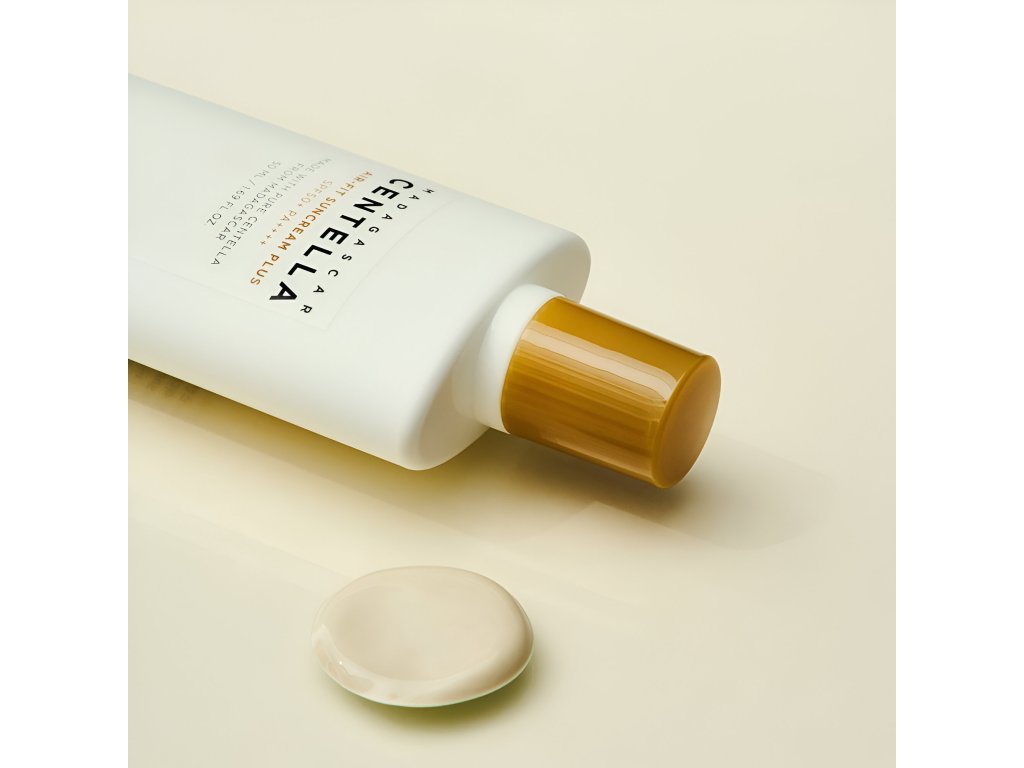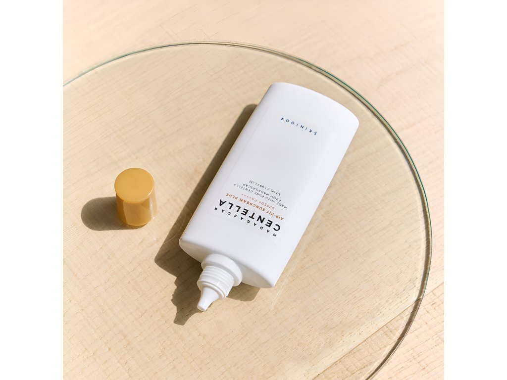 Krém SKIN1004 Madagascar Centella Air-Fit Suncream Plus SPF50+ PA++++ spolehlivě chrání před ultrafialovým zářením díky hypoalergenním fyzikálním filtrům - oxid zinečnatý a oxid titaničitý, které nezpůsobují podráždění ani na citlivé pokožce.