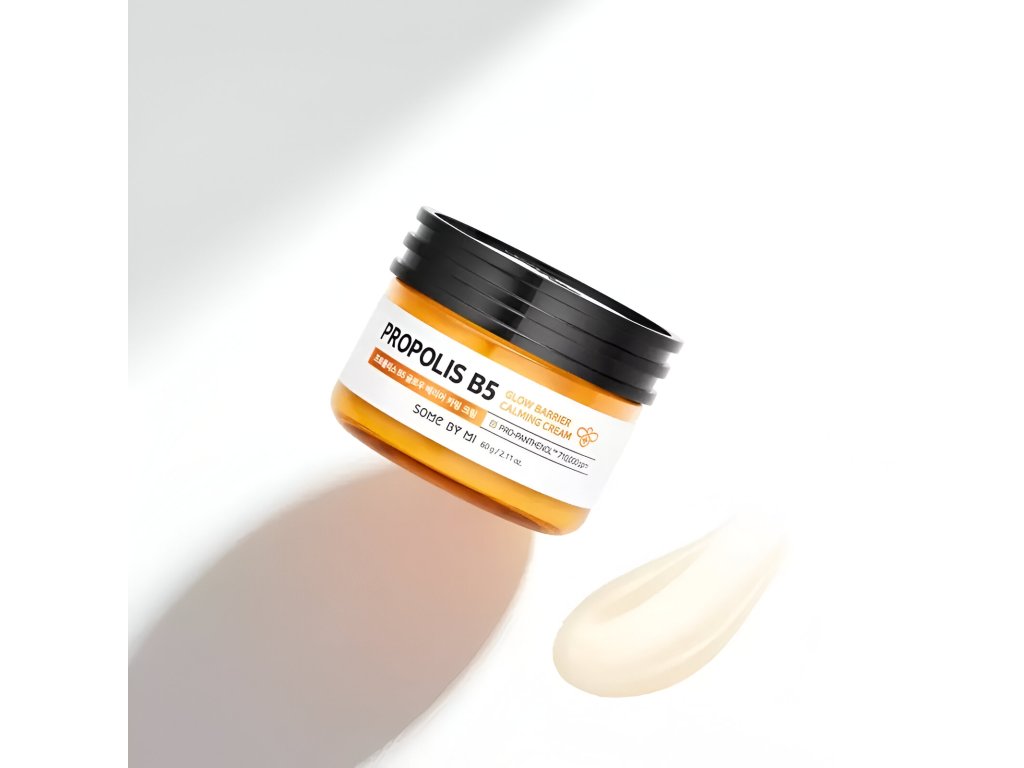 Some By Mi Propolis B5 Glow Barrier Calming Cream má hojivý účinek, zmírňuje zarudnutí a podráždění a posiluje ochrannou bariéru. Zvyšuje lokální imunitu pokožky, činí ji méně citlivou.