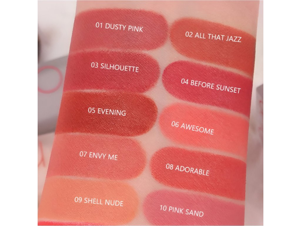 Matná rtěnka Rom&Nd Zero Matte Lipstick s jemnou krémovou texturou jemně klouže po rtech a vytváří beztížný sametový povlak. Dlouhotrvající rtěnka vypadá přirozeně a pohodlně sedí na rtech.