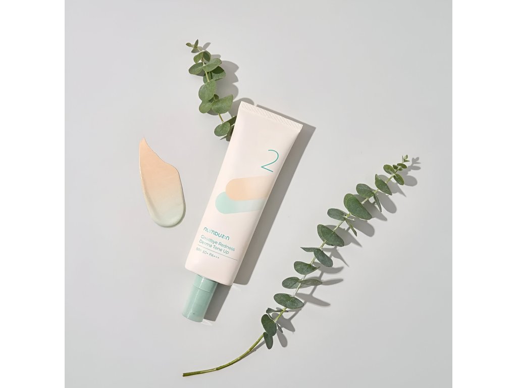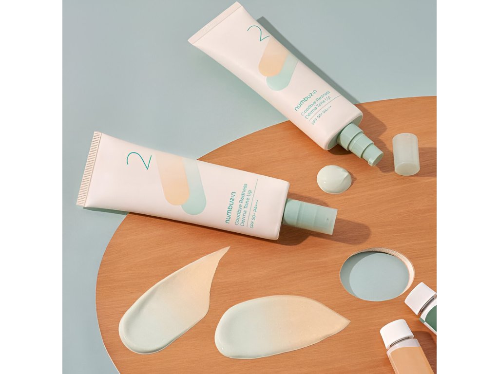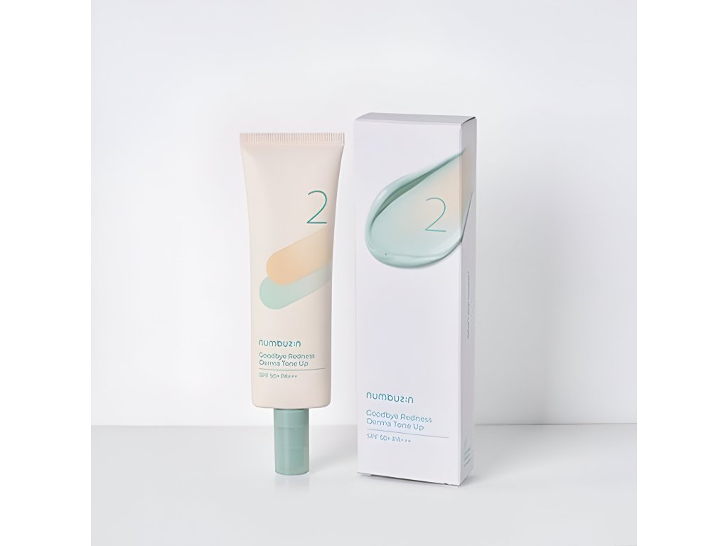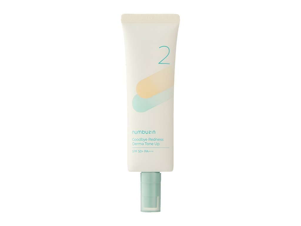 Numbuzin No.2 Goodbye Redness Derma Tone Up kombinuje ochranu proti slunci, podkladovou bázi, barevný korektor a zklidňující péči v jednom krému.
