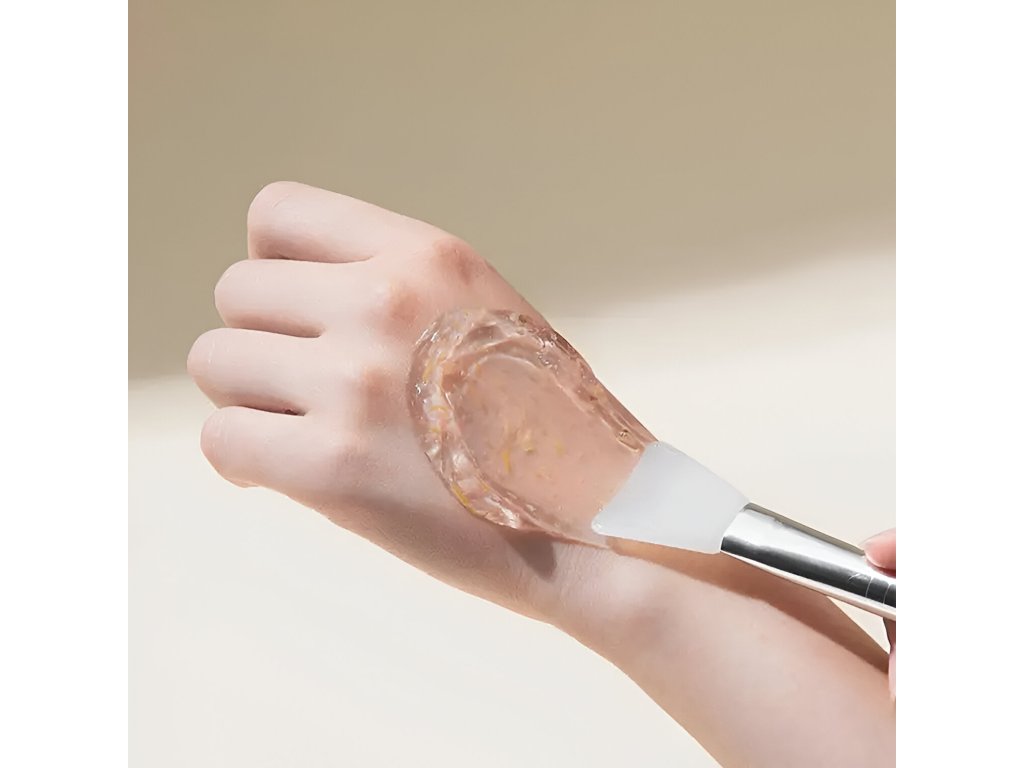 Veganská maska má lehkou gelovou texturu s drcenými okvětními lístky měsíčku.