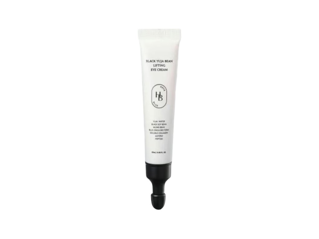 HEVEBLUE Black Yuja Bean Lifting Eye Cream je liftingový oční krém plný vysoce kvalitních aktivních složek, který obsahuje 427 500 ppm vody z yuja, 50 000 ppm extraktu z černých fazolí a 100 000 ppm extraktu z fazolí mungo. Je obohacen o nízkomolekulární kolagen T3 rostlinného původu, podobný tomu, který se nachází v lidském těle, pro efektivnější přidání objemu bez použití živočišného kolagenu.