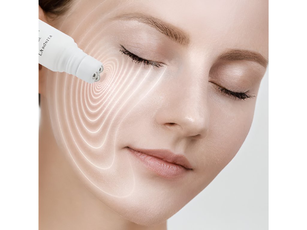 La Bonita krém s komplexem NMN pro intenzivní snížení otoků, vaků a vrásek kolem očí se speciálním, tříbodovým masážním rollerem.