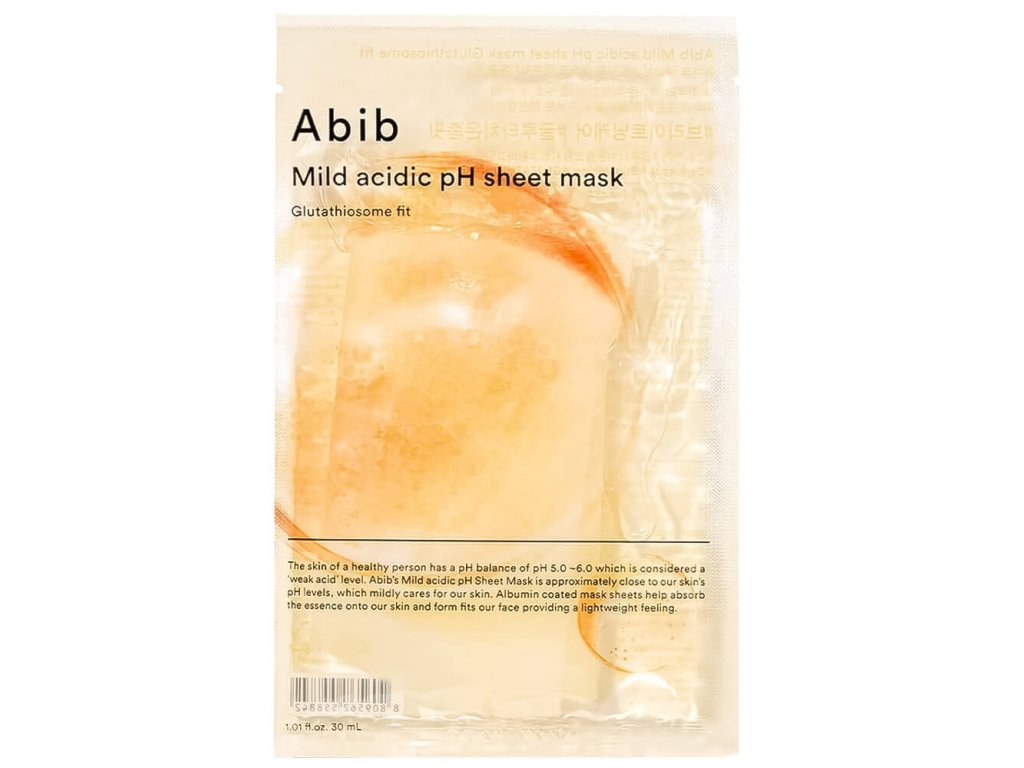 Pleťová maska Abib Mild Acidic pH Glutathiosome Fit zklidňuje zarudnutí, sjednocuje tón pleti a dodává jí přirozený jas. Její složení s nízkým pH obnovuje hydrolipidickou rovnováhu.