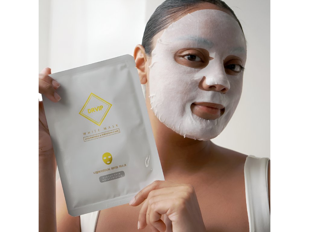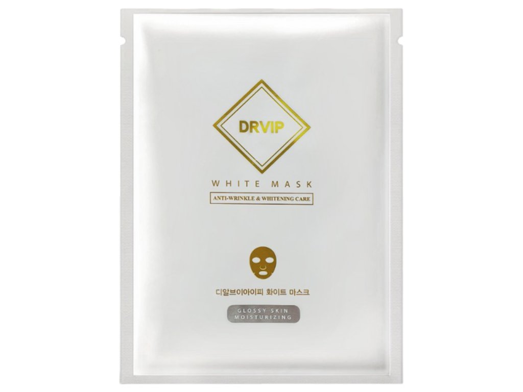 DRVIP White Mask je luxusní plátýnková maska určená k okamžité hydrataci a rozjasnění pleti a zároveň k redukci vrásek. Ideální pro všechny typy pleti, zejména pro unavenou, matnou a bez lesku s poškozenou hydrolipidovou bariérou a zabarvením pleti. Receptura masky obsahuje kyselinu hyaluronovou, glutathion a niacinamid, které mají řadu prospěšných vlastností pro pleť - hydratují, rozjasňují a mají antioxidační vlastnosti. Peptid-8, běžně nazývaný „Botoxový peptid“ (kvůli své prokázané účinnosti při redukci vrásek), má omlazující účinek, zatímco extrakty z měsíčku lékařského a aloe zklidňují podráždění.