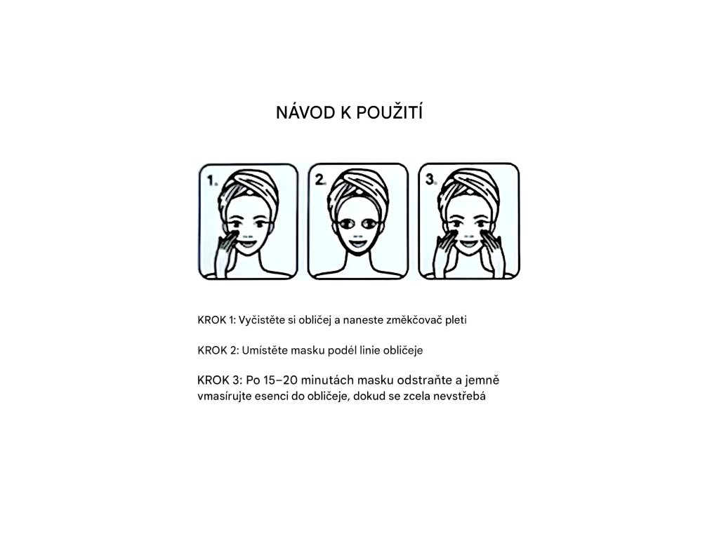 Naneste masku na vyčištěnou a tonizovanou tvář. Doba působení masky je 15 - 20 minut.
