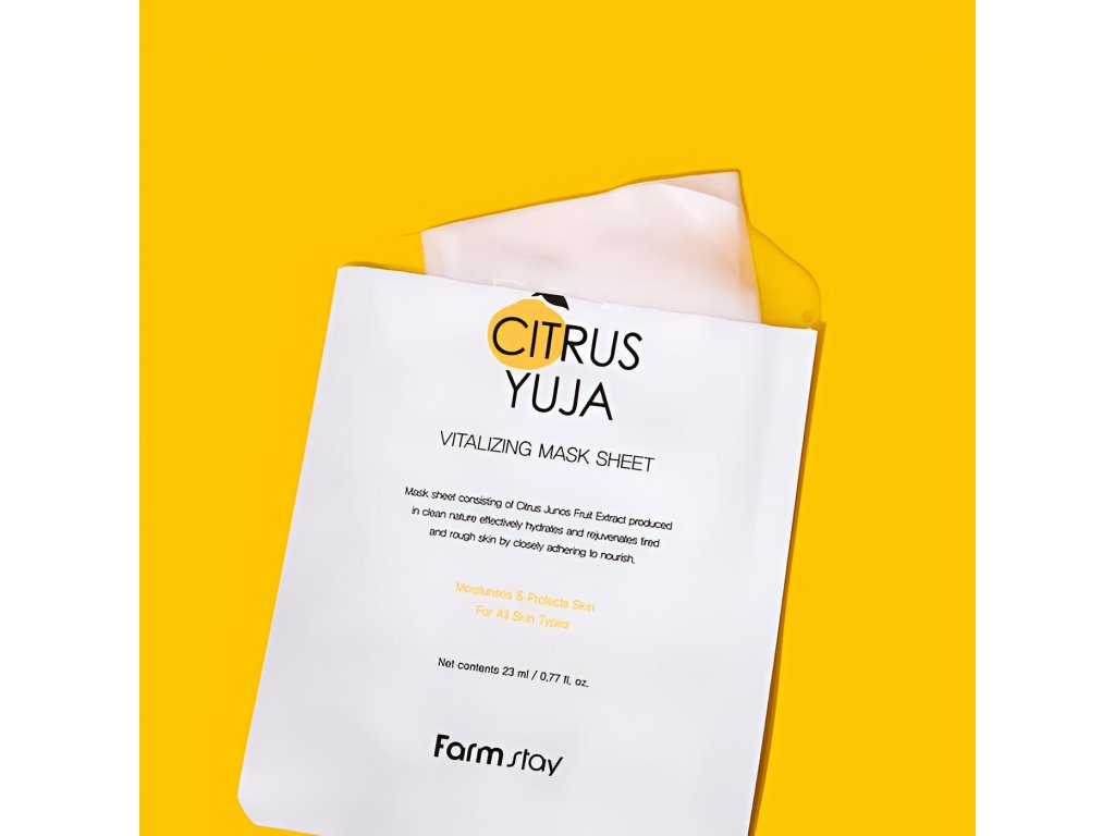 Představujeme Farm Stay's Real Citrus Yuja Vitalising Sheet Mask – váš dokonalý společník pro péči o pleť pro omlazující a revitalizující zážitek. Tato maska s pečlivě připravenou směsí klíčových ingrediencí je navržena tak, aby povzbudila vaši pleť.