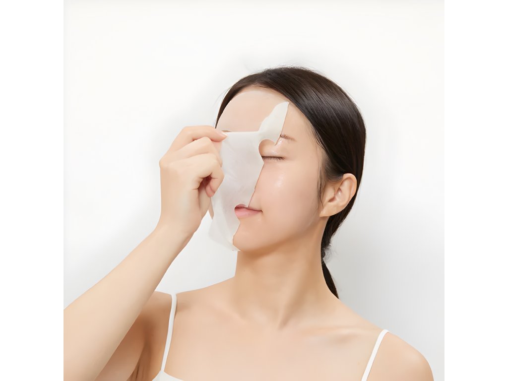 Po umytí naneste masku na obličej, po 15-20 minutách sejměte a konečky prstů lehce poklepejte na pokožku, aby se vstřebala zbývající esence.