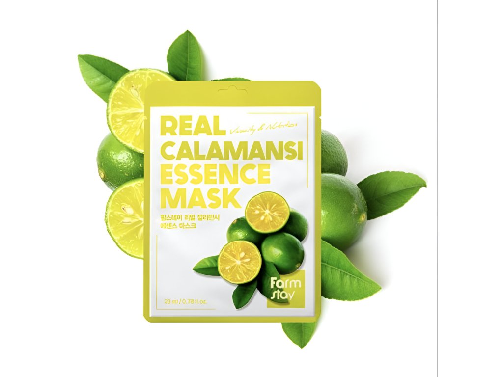 FarmStay Real Calamansi Essence Mask obsahuje extrakt z calamansi, který je bohatý na vitamín C. Calamondin (calamansi) je kříženec mandarinkového stromu s kumquatem. Díky tomuto křížení obsahuje calamansi o 30 % více vitamínu C než citrony. Maska pomáhá hydratovat a osvěžovat pokožku, vyrovnává tón a zlepšuje pleť a dodává jí jas. Maska má antioxidační vlastnosti, pomáhá pleti zbavit se toxinů, které přispívají k předčasnému stárnutí.