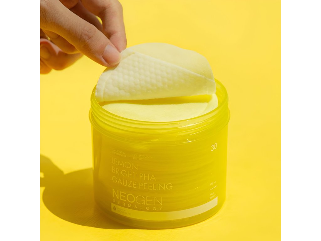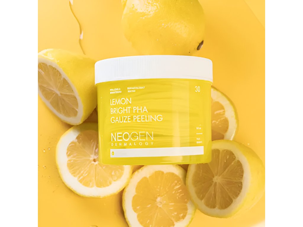 NEOGEN Bio-Peel Gauze Peeling Lemon jsou manuální exfoliační polštářky kombinované s chemickými peelingovými účinky citronového séra. Těchto 30 jednorázových peelingových polštářků využívá účinnou kombinaci chemických exfoliantů – včetně kyseliny mléčné, glykolové a výtažků z citronu, pomeranče a papáje – k čištění ucpaných pórů a současně využívá sílu přírodního vitamínu C, který pomáhá vyblednout jizvy po akné a vyrovnat tón pleti.
