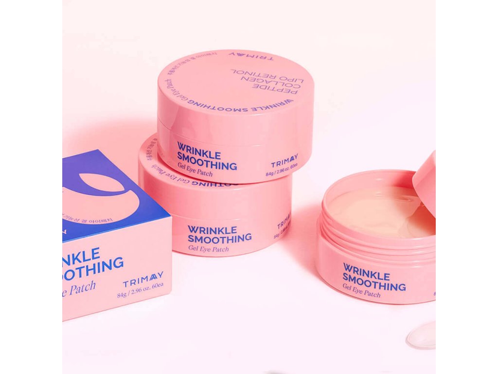 Oční náplasti Trimay Wrinkle Smoothing Gel Eye Patch zlepšují pevnost a elasticitu, vypínají pleť pod očima, redukují výskyt vrásek a vytváří hladkou a rovnoměrnou texturu. Jsou ideální pro prevenci změn souvisejících s věkem.