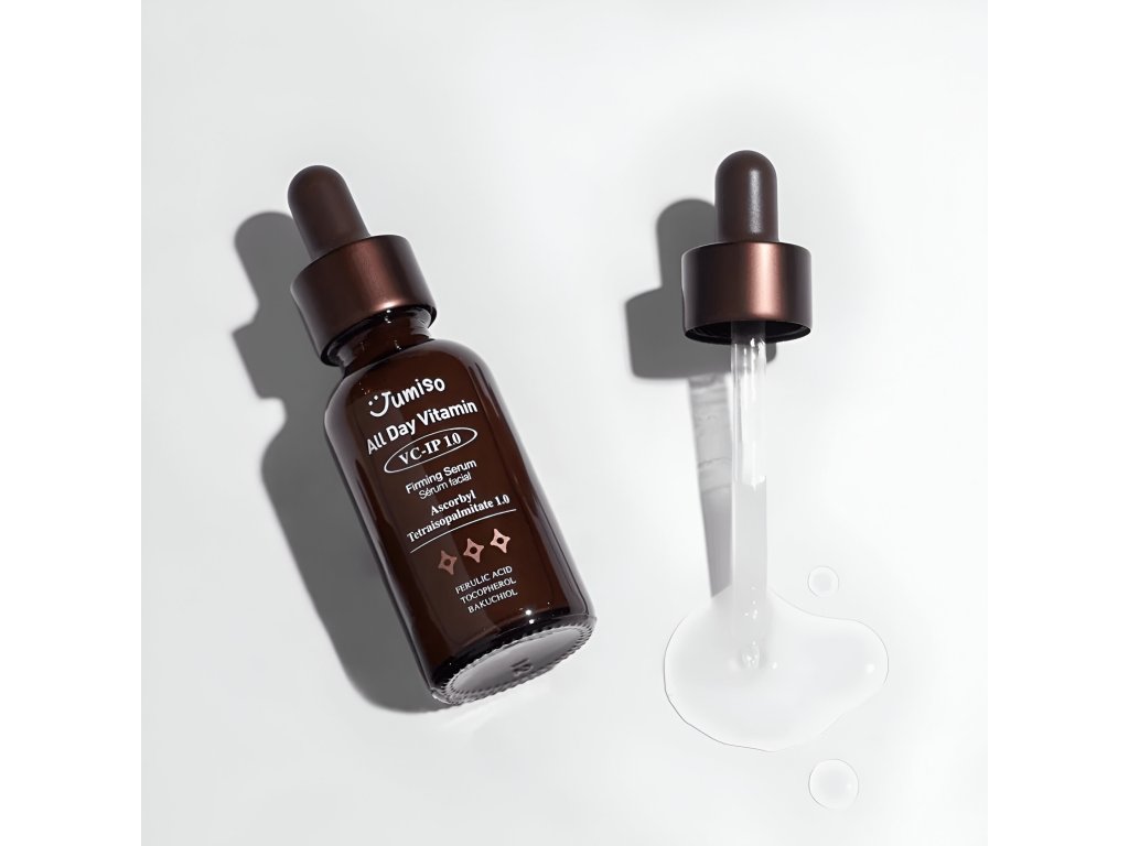 Rozjasňující a zpevňující sérum s Vitamínem C Jumiso All Day Vitamin VC-IP 1.0 redukuje pigmentové skvrny a navrací pleti pružnost.