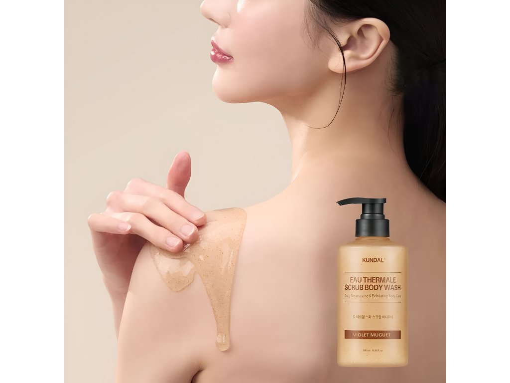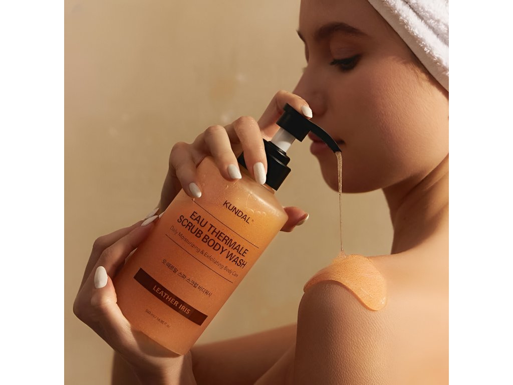 KUNDAL Eau Thermale Spa Scrub Body Wash je sprchový gel, který obsahuje peelingové zrníčka pro lepší exfoliaci, dodává vaší pokožce jemnější texturu a jemnější pocit.
