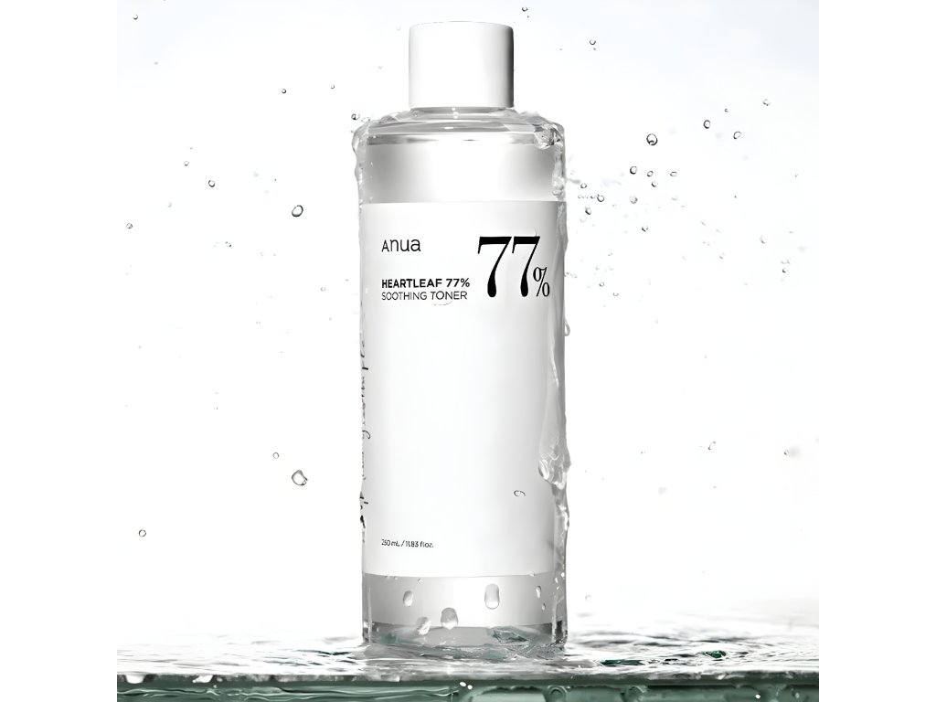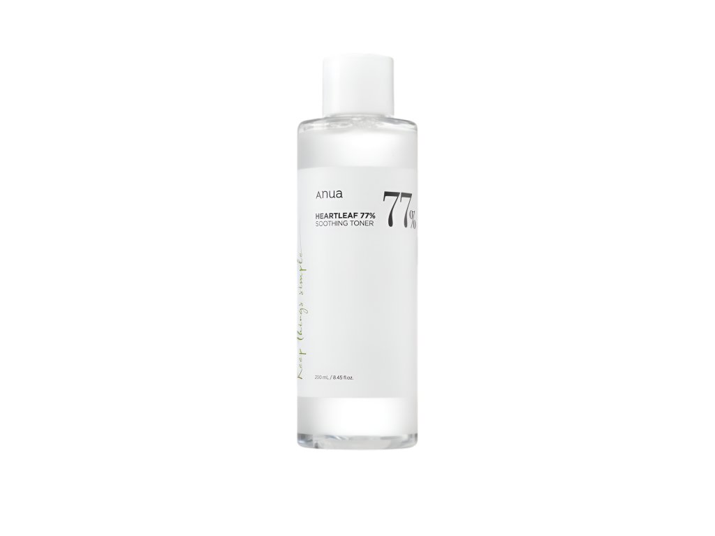 Anua Heartleaf 77% Soothing Toner, vyrovnávací tonikum doplňuje nedostatek vlhkosti po umytí, poskytuje pokožce vydatnou hydrataci a výrazný zklidňující účinek. Neutralizuje agresivní účinky tekoucí vody, obnovuje normální rovnováhu pH a zabraňuje vzniku těsnosti po umytí.