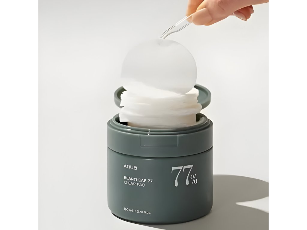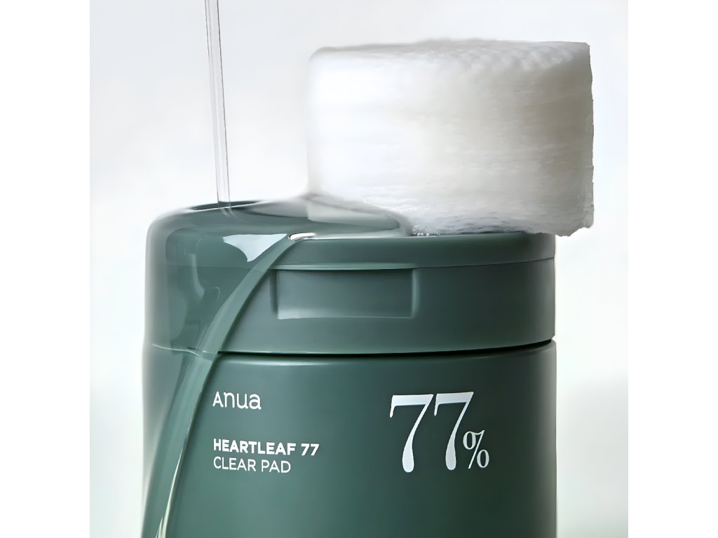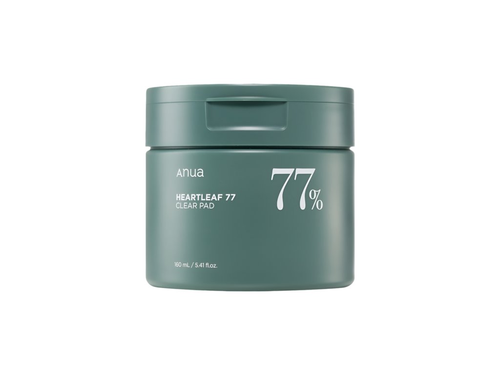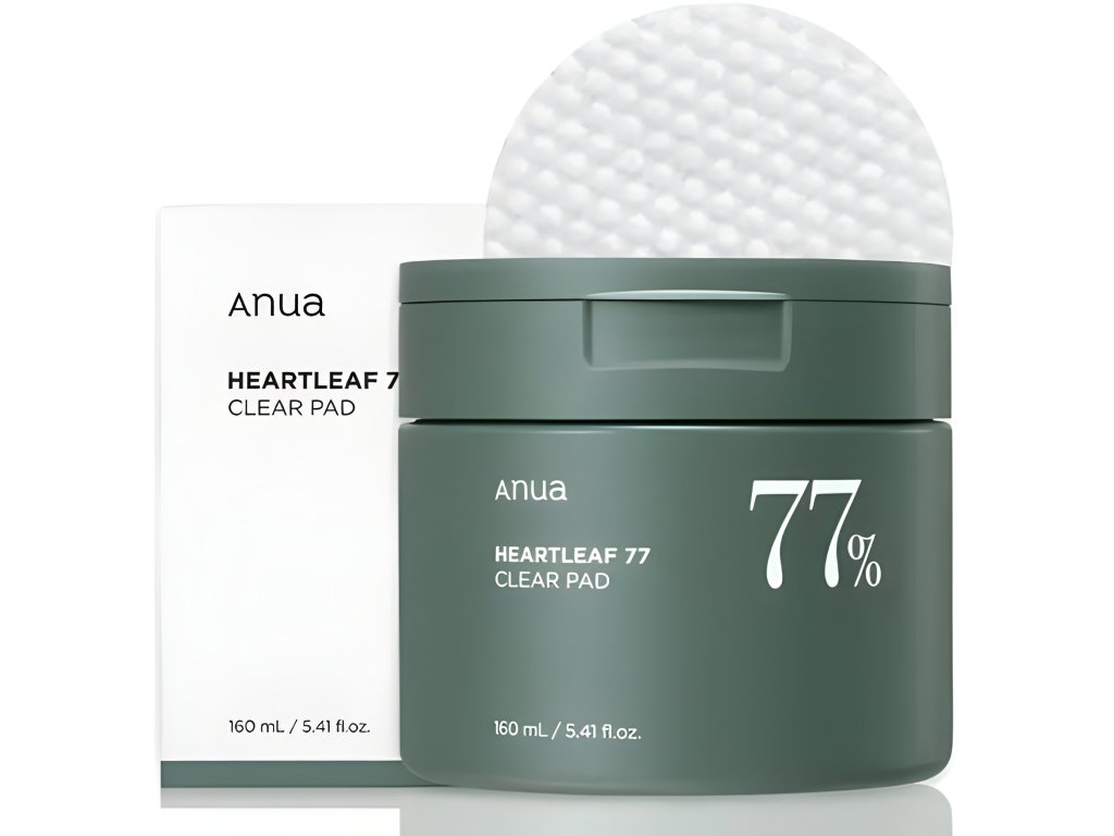 Exfoliační polštářky s Toulení srdčitou a kyselinou PHA Anua Heartleaf 77% Clear Pad jemně odstraňují odumřelé buňky z povrchu epidermis, leští a vyhlazují reliéf. Mají výrazný uklidňující účinek, podporují hojení zánětů a zabraňují vzniku akné. Nekomedogenní tampónky jsou šetrné k pokožce, neucpávají póry a nezpůsobují podráždění.