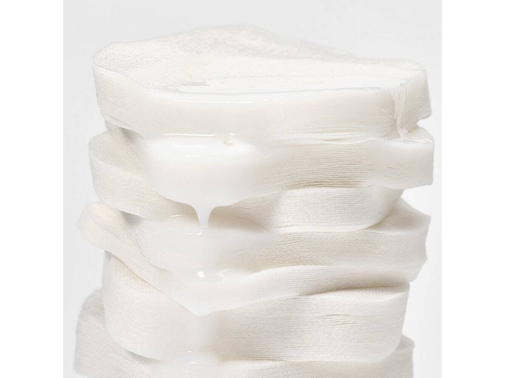 Po očištění jemně otřete obličej tampony nebo je nechte působit 10–15 minut. Sejměte je a jemně vklepejte konečky prstů, aby se vsákly zbývající esence.