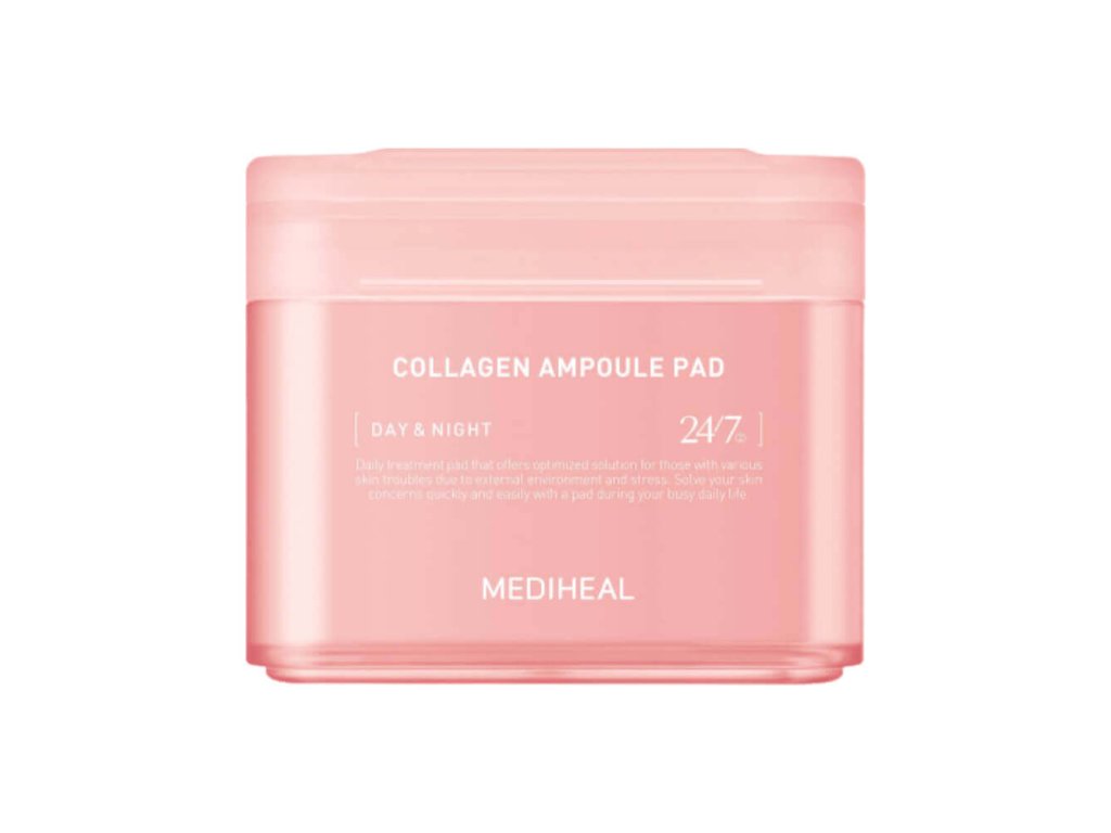 Mediheal Collagen Ampoule Pads normalizují optimální pH rovnováhu po čištění, čímž eliminují suchost a napětí. Mohou být použity jako lokální maska pro rychlou obnovu pleti a úlevu od podráždění. Poskytují celkový posilující účinek, stimulují syntézu kolagenu a vyplňují pleť.