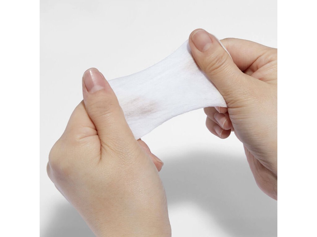 Čtvercové vatové tampony jsou vysoce elastické, což umožňuje jejich použití na velkých plochách pleti, jako je čelo, tváře a okolí očí. Nedráždí pokožku. Pro hygienické odstranění produktu je součástí balení pinzeta.