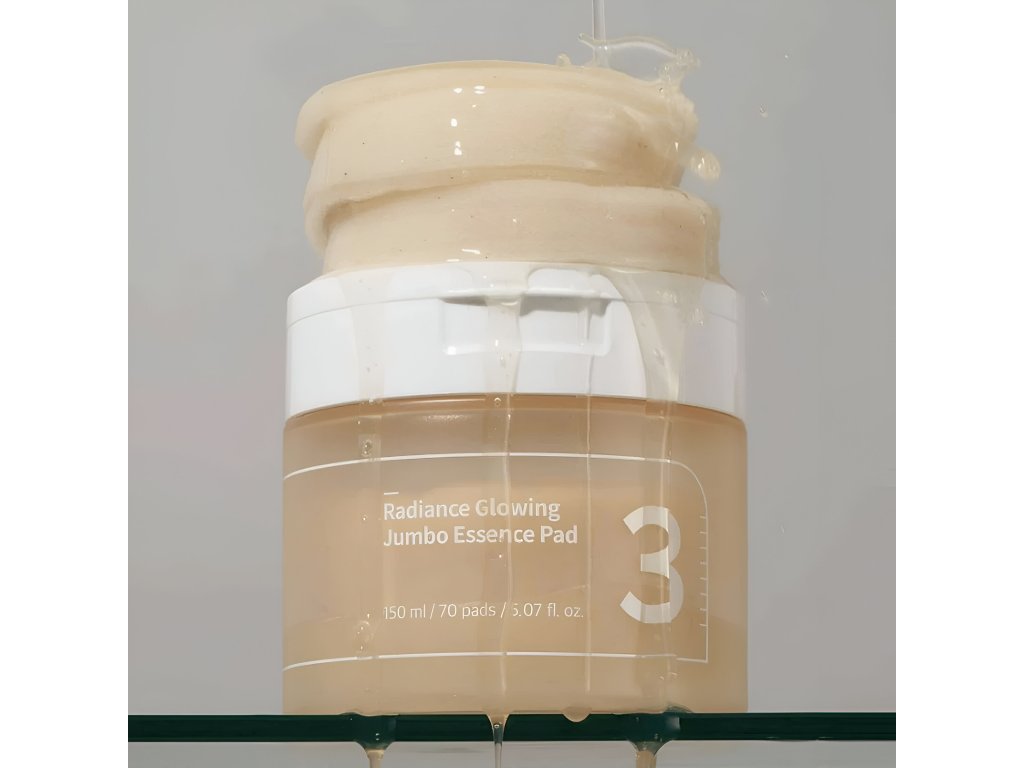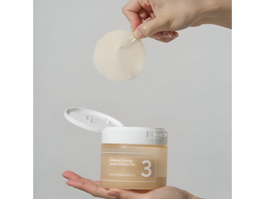 Numbuzin No.3 Radiance Glowing Jumbo Essence Pad rozjasňující pleťové tampónky obsahují 50 druhů fermentovaných extraktů pro revitalizaci a výživu pleti. Tampónky rovněž obsahují adenosin a niacinamid pro zesvětlení tónu pleti a hyaluronát sodný pro zvýšení a udržení vlhkosti pokožky po delší dobu.