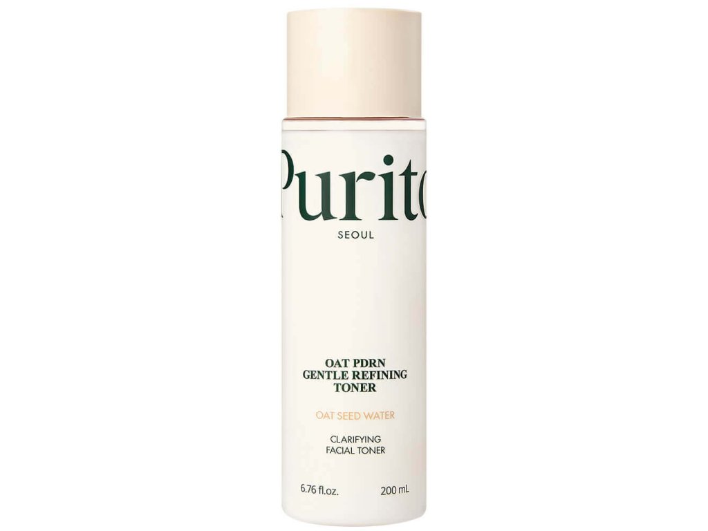 Purito Seoul Oat PDRN Gentle Refining Toner vyživuje a zjemňuje pokožku, urychluje hojení, vyhlazuje texturu a udržuje elasticitu.