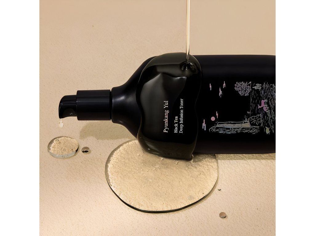 Pyunkang Yul Black Tea Deep Infusion Toner obsahuje fermentovaný černý čaj pro hloubkovou výživu pokožky a zároveň poskytuje hydratační a rozjasňující účinky. Extrakt z černého čaje je bohatý na antioxidanty a vitamíny, které čistí pokožku od toxinů, posilují kožní bariéru a snižují výskyt jemných linek a vrásek. Zvyšuje se zadržování vlhkosti, pleť je pevnější a zářivější. Dobré pro použití na citlivou a stárnoucí pleť.